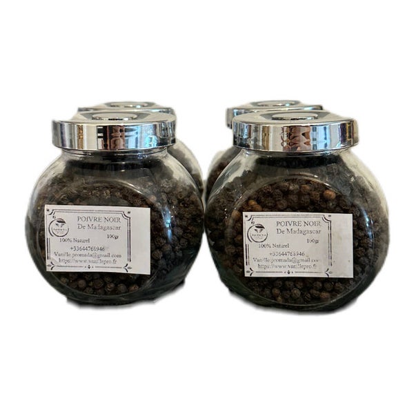 Plongez dans l’intensité aromatique du poivre noir de Madagascar de chez Vanille'pro, réputé pour sa richesse en goût et sa puissance en bouche. Cultivé dans les régions volcaniques de l’île, ce poivre d’exception possède des notes chaudes et piquantes qui rehausseront vos plats de viande, de légumes ou même vos sauces et marinades. Offrez à vos recettes une saveur authentique avec ce poivre noir aux qualités gustatives incomparables, prisé des amateurs de cuisine épicée.